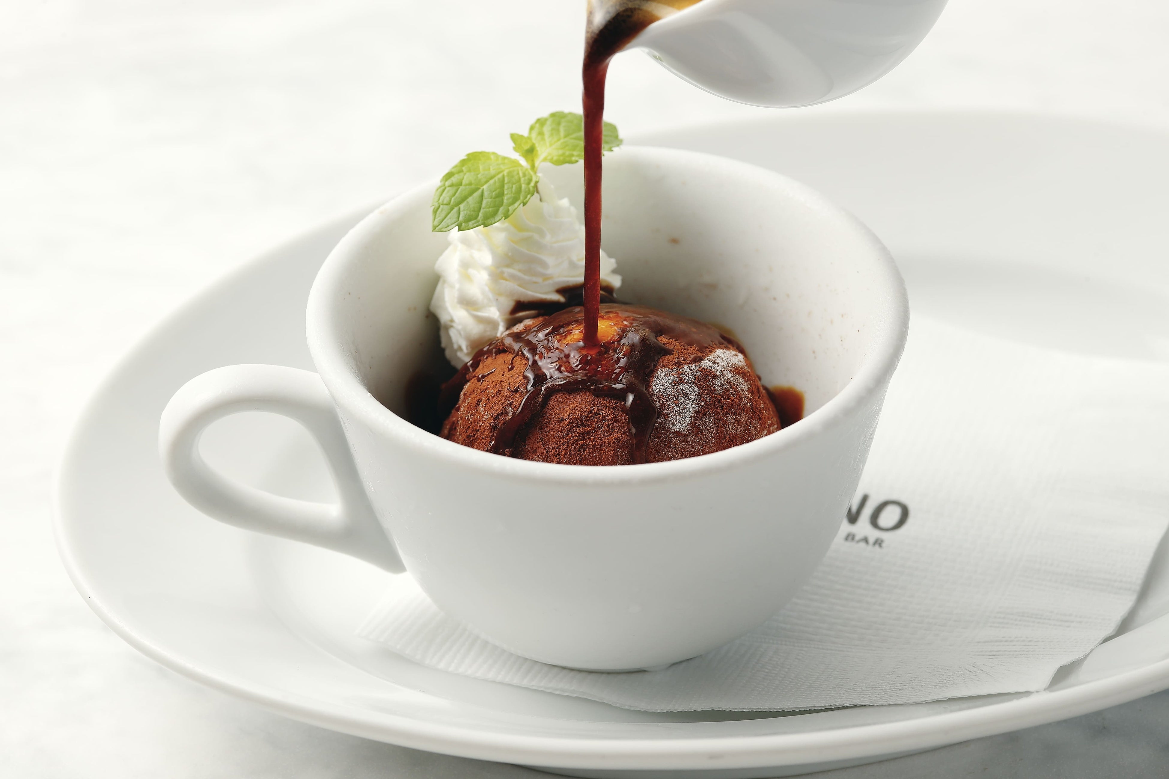 アフォガートは、熱々のエスプレッソをバニラアイスクリームにかけた、温かさと冷たさ、甘さと苦さが絶妙に調和するイタリアのデザートです。IL LUPINO PRIMEでは、この伝統的なデザートにダークチョコレートソースを隠し味として加え、さらにクリームとカルーアで仕上げました。甘く濃厚でリッチな味わいをお楽しみいただけます。