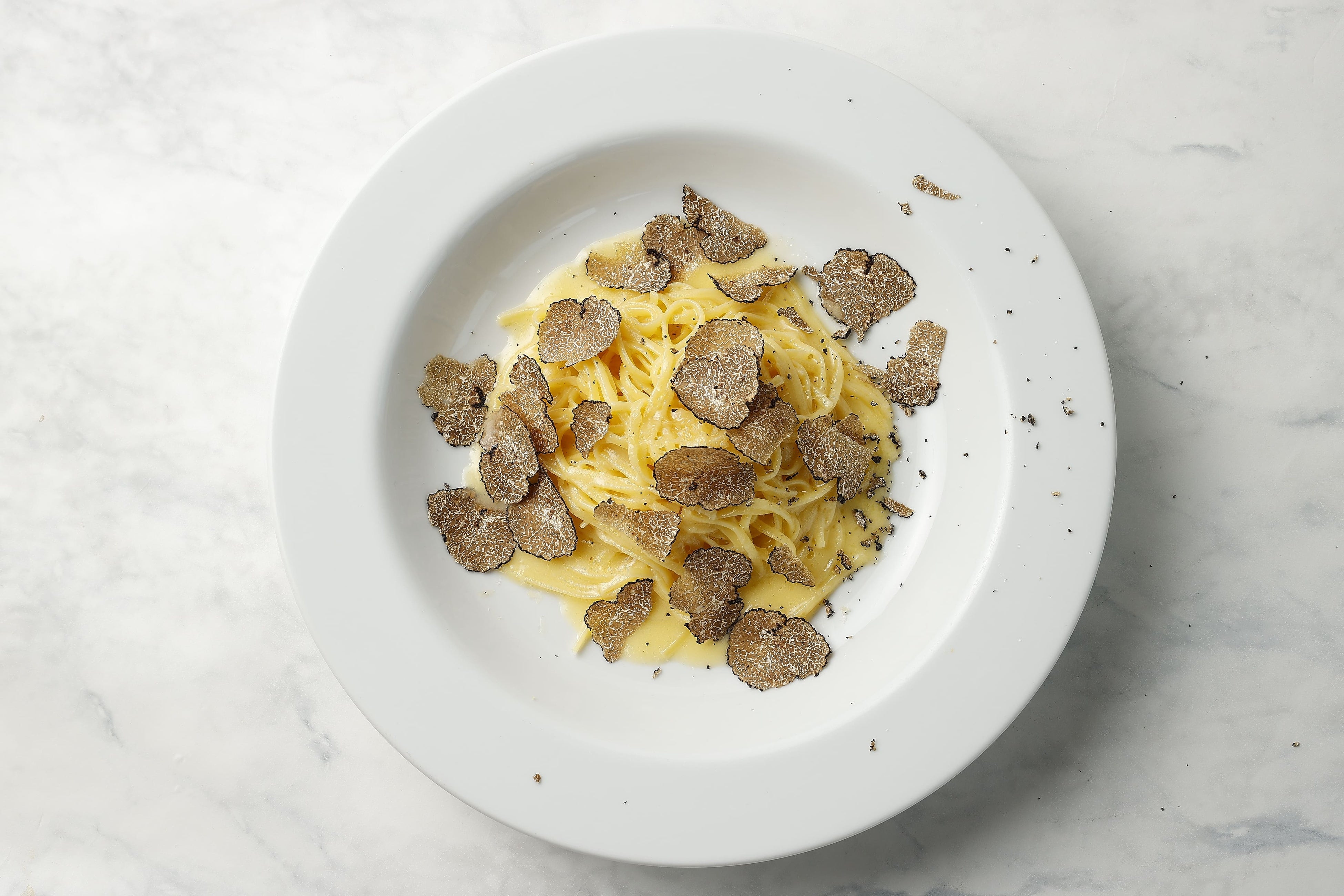 イタリア北部ピエモンテ地方で古くから愛される、手打ちの細いパスタ「タヤリン」。その繊細な食感が特徴のタヤリンを濃厚なバターソースと絡め、リッチでコクのあるフォンティーナチーズとパルメザンチーズを惜しみなく加えました。クリーミーなチーズが贅沢な味わいを演出します。仕上げにたっぷりとトッピングされたトリュフの芳醇で奥深い香りが、さらに一皿を引き立てます。このタヤリンは、シンプルながらも素材の良さを最大限に活かした一品で、贅沢なひとときを演出いたします。