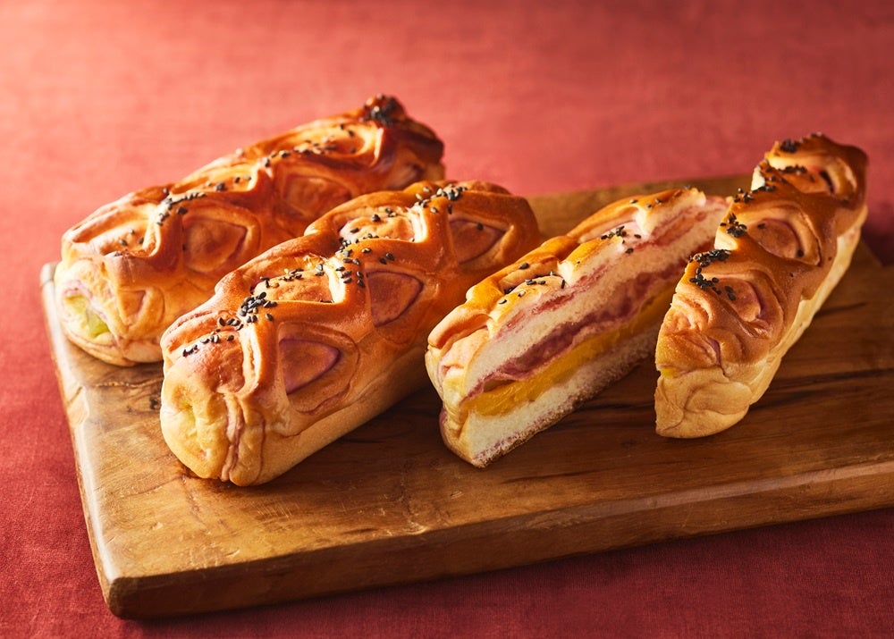 秋ならではの素材を活かした人気食材の「国産サツマイモ」を使用し、「国産紫芋」を折り込んだふんわり生地にコクのある甘みのさつまいもぺーストを包みました。しっとりとしたやわらかい食感に黒ゴマの香ばしさを風味に効かせた色合いも秋を感じられるメニューです。温めてお召し上がりいただくと、ふわっとおいもの香りが漂い、焼き立てのような味わいをお楽しみいただけます。