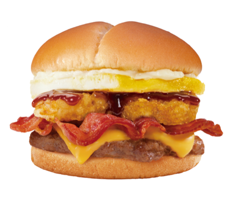 ウェンディーズオリジナルのシンプルな味わいのホームスタイルチキンに、コクのあるバーボンBBQソース、アップルウッドで燻製した香ばしいカリカリのベーコン、サクほく食感が特徴のハッシュポテトを合わせました。食感の違いが楽しめる、秋限定·月見バーガーです。