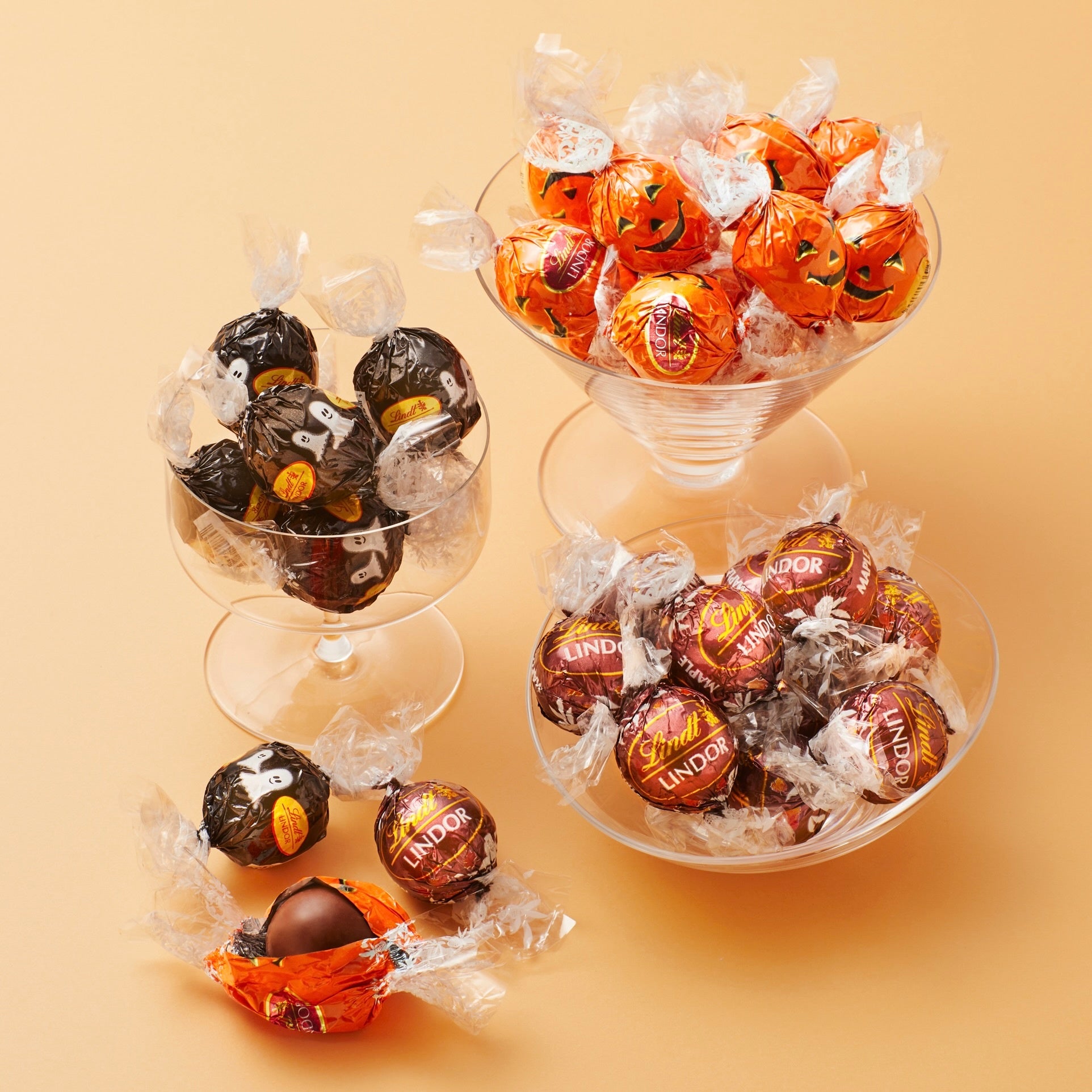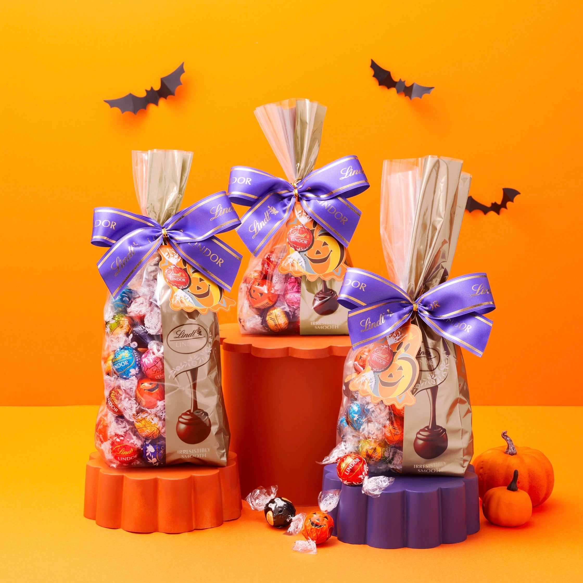 ハロウィンの合言葉「Trick or Treat」(いたずらか、お菓子か)のTreatを「ご褒美ショコラ」のリンドールに言い換えた「Trick or Lindor」のメッセージと共に、自分へのご褒美にはもちろん、身近な友人や家族への手土産、ハロウィンパーティーで配るお菓子にもご利用いただけるよう、人数やシーンによって選べる商品を多数ラインナップいたしました。