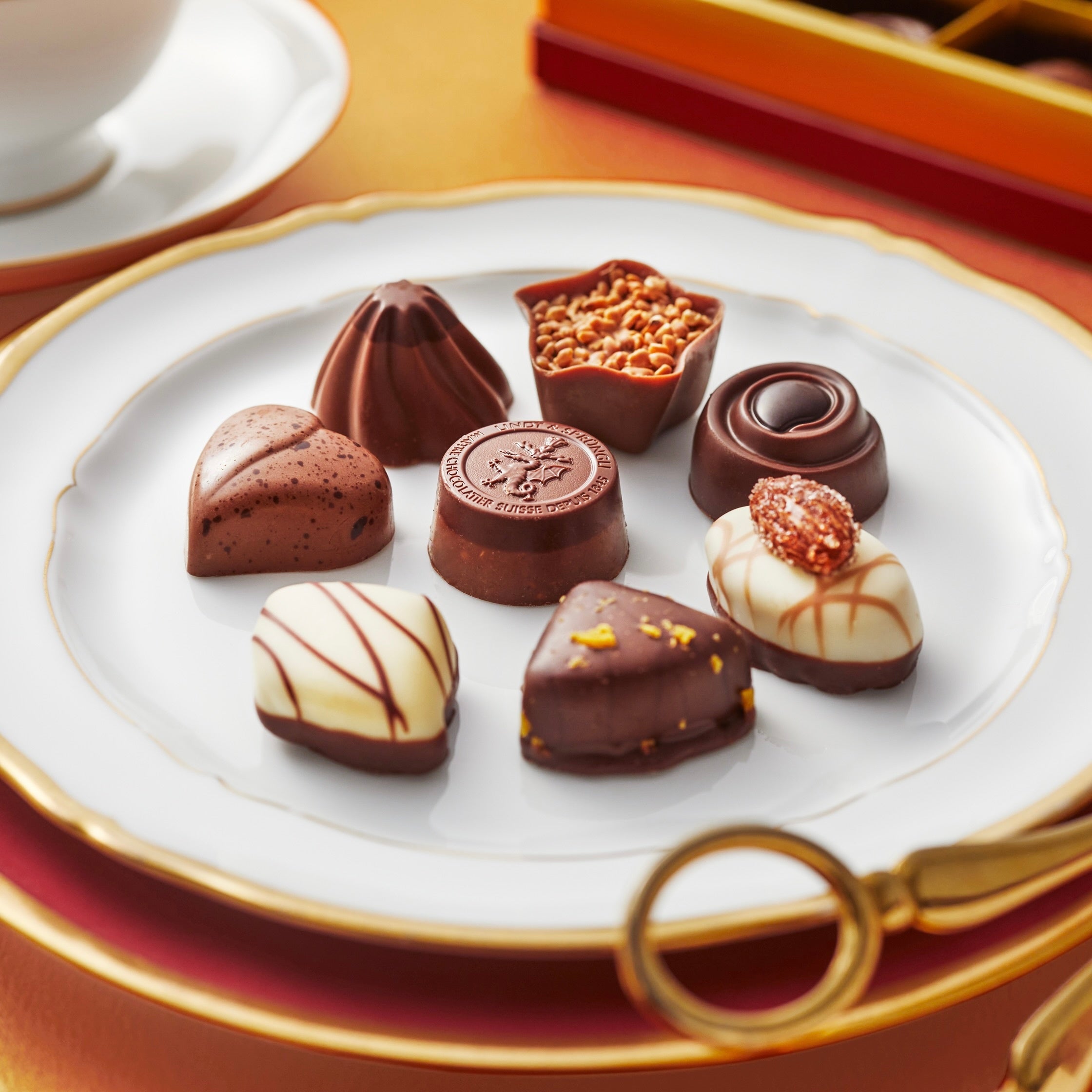 熟練した技を持つリンツのチョコレート職人「メートル・ショコラティエ」が2年もの歳月をかけ開発し、388レシピものアイデアから厳選したプラリネを詰め合わせたギフトコレクション。高品質な素材の豊かな風味と、なめらかなチョコレートのマリアージュをお楽しみいただける至高の一粒をジュエリーボックスのような高級感のあるボックスに入れ、さらに今だけ贈る人やシーンを選ばない華やかなゴールドリボンを付けてお届けいたします。