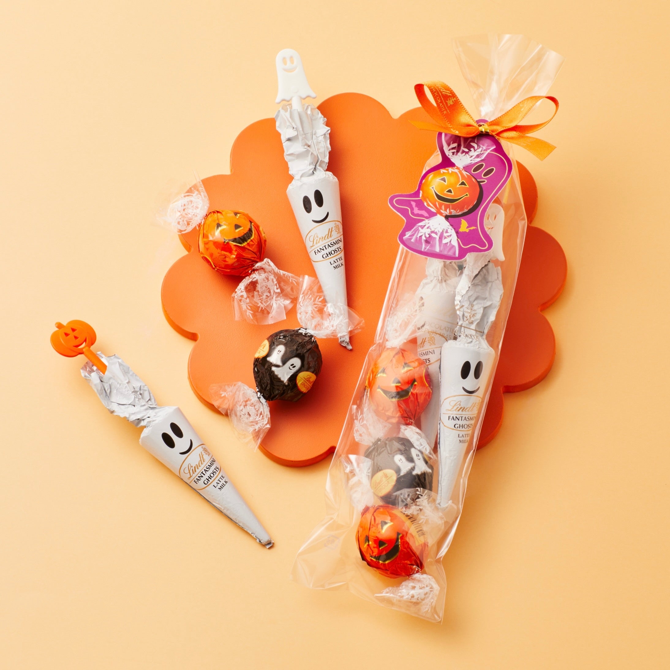 子供に大人気のアンブレラ型チョコレートと、期間限定のリンドール「ハロウィン」「ゴースト」が入ったハロウィン感あふれるプチギフト。ちょっとしたプレゼントをしたいときに大活躍すること間違いなし。