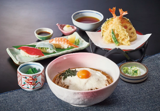 サガミ自慢の麺・天ぷら・寿司・茶わん蒸しをセットにした「サガミのこだわり」を満喫できるメニューです。
