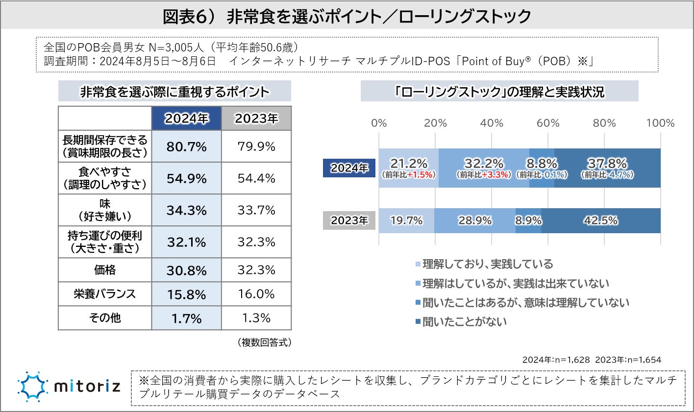 ・「ローリングストック」を理解している人は2023年から4.8Pt増加しており、徐々に浸透が進む