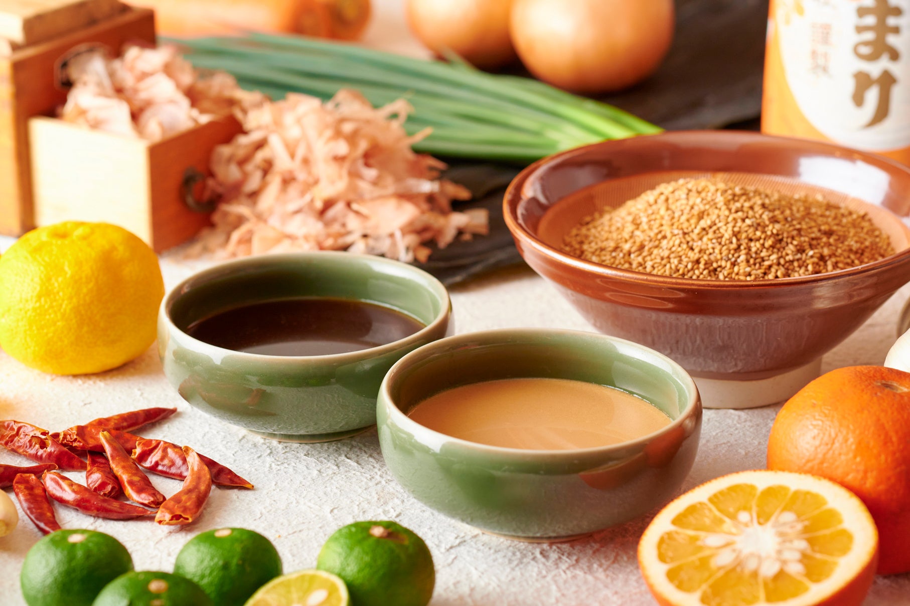 料理の味を引き立てる『しゃぶ禅』秘伝の「胡麻だれ」と「ポン酢」は、吟味した十数種類もの素材から独自の製法で作る、非加熱、無添加、化学調味料不使用の「生のたれ」です。鮮度を大切にするため、毎日使用する分のみ各店舗で仕込んでいます。風味豊かでコク深い味わいの「胡麻だれ」、柑橘の爽やかさを昆布、鰹出汁でまろやかに仕上げた「ポン酢」、そして「特製出汁だれ」が、肉と野菜の旨味を引き出し、しゃぶしゃぶを一層美味しくします。