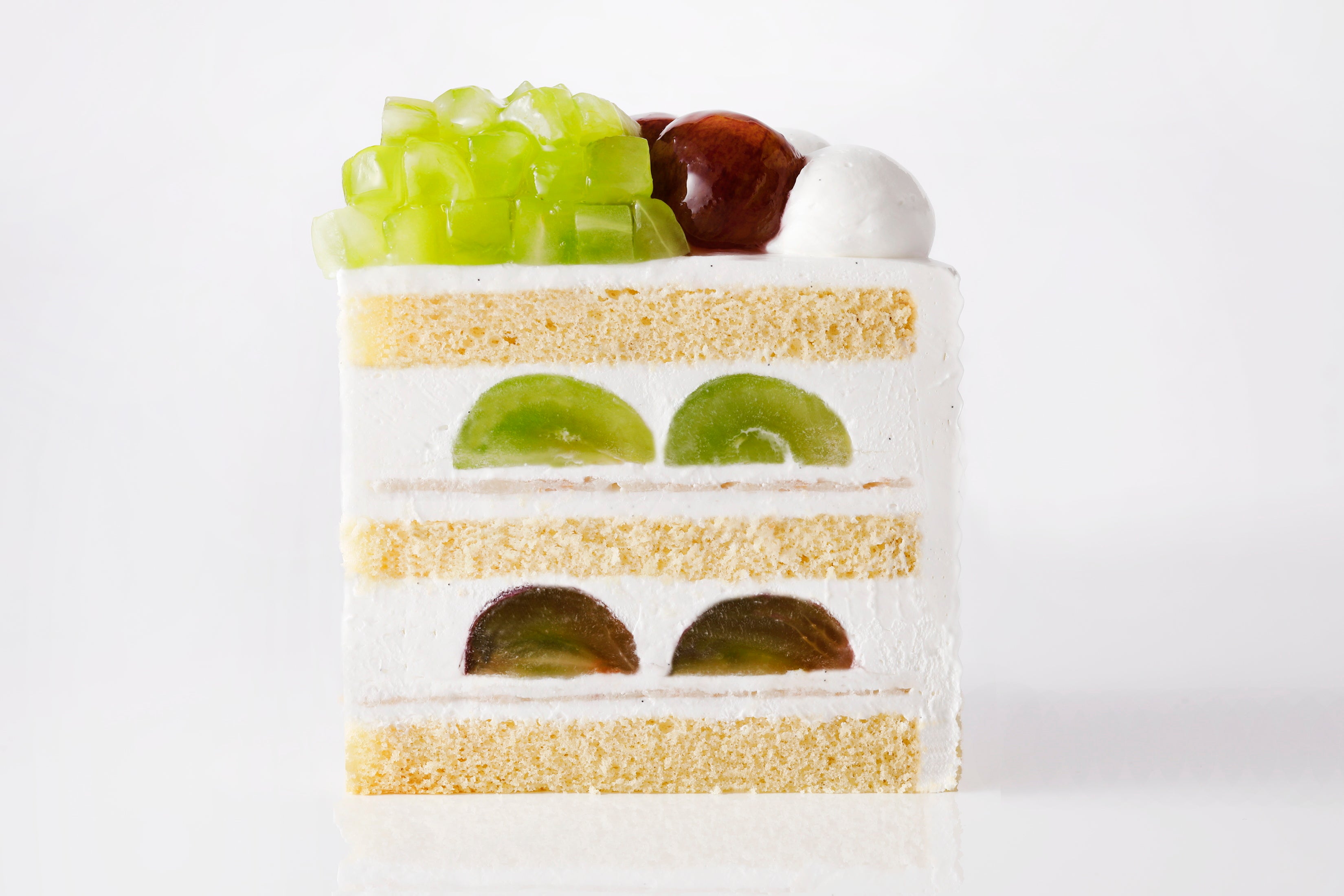 ピオーネとシャインマスカットの2種類のぶどうを主役にした『新エクストラスーパーグレープショートケーキ』は、スポンジやクリームにも、日本中から厳選した素材を使用した、まさに究極の一品です。