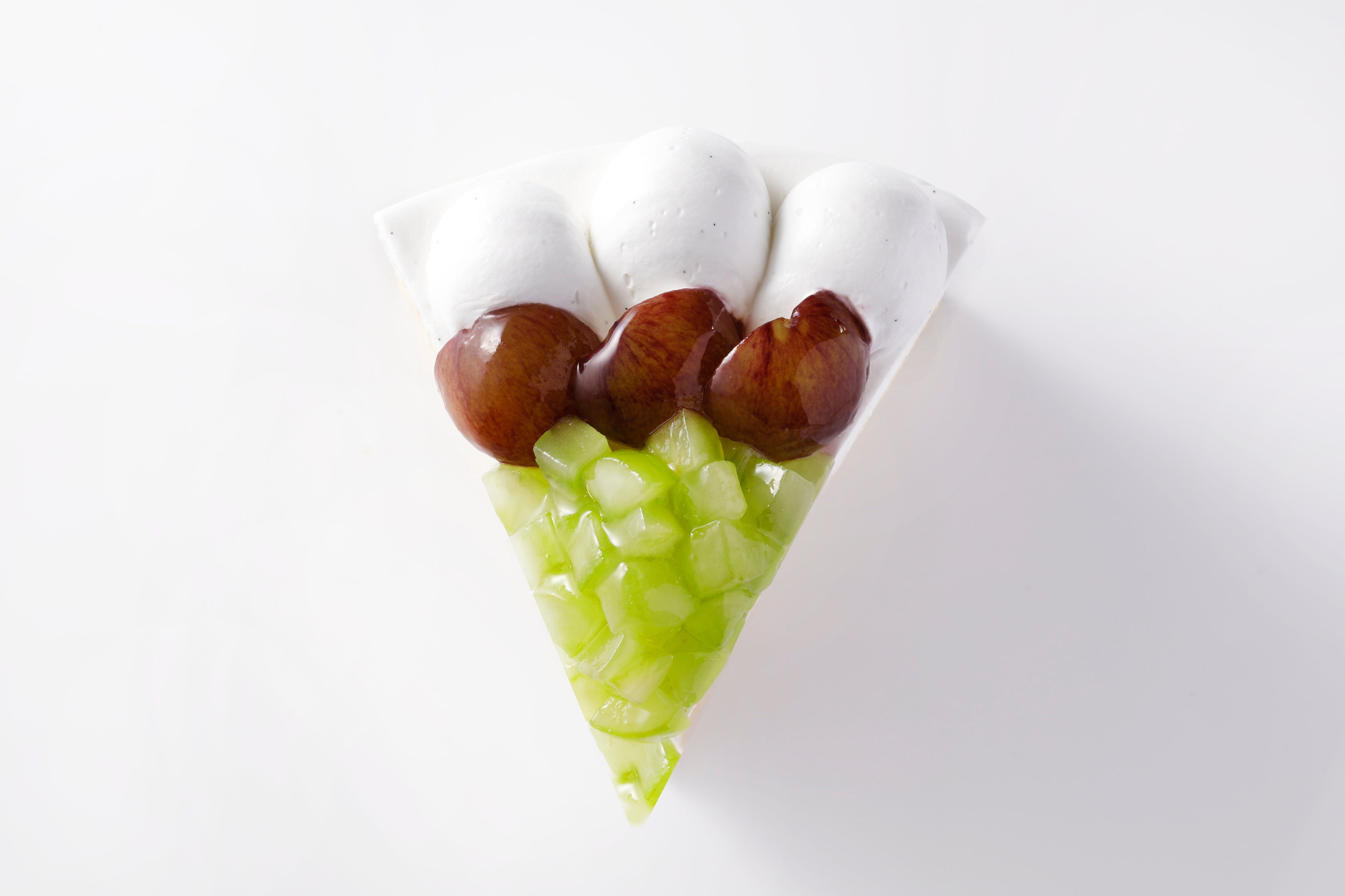 スポンジ生地には、あわ・いなきび・アマランサスなどの雑穀を混ぜ合わせた、ホテルオリジナルの「ホワイトシリアル」と、卵には玄米を食べて育った鶏から生まれた「玄米卵」を採用し、ぶどう本来の甘みを引き立たせる、軽やかな味わいに仕上げました。また、生クリームには九州大牟田産生クリームに「和三盆糖」を加え、より一層上品な味わいに。さらにアクセントとして、各層になめらかでみずみずしい「ライチ」の層をプラスし、爽やかですっきりとした味わいを演出。2種類のぶどうの濃厚な甘みを最大限引き立たせた、こだわり尽くしの一品です。