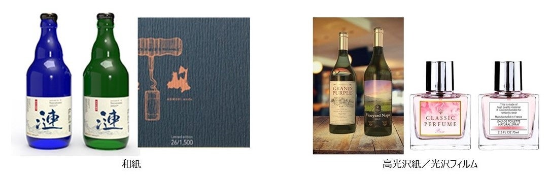 速乾性に優れ、光沢紙・高光沢紙・光沢フィルム(注3)との相性が良く、高級感のある商品ラベルを高画質で印刷いただけます。