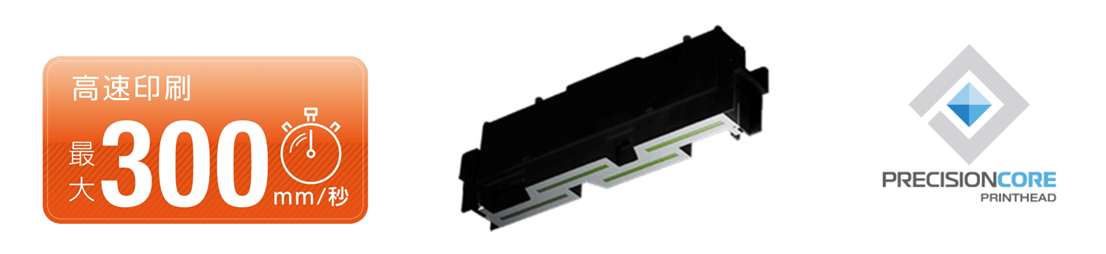 4色のPrecisionCoreラインヘッドを搭載。ラインヘッド方式により、最大毎秒300mmのフルカラー高速印刷を実現。高品質かつ大量印刷ニーズに、高い生産性で応えます。