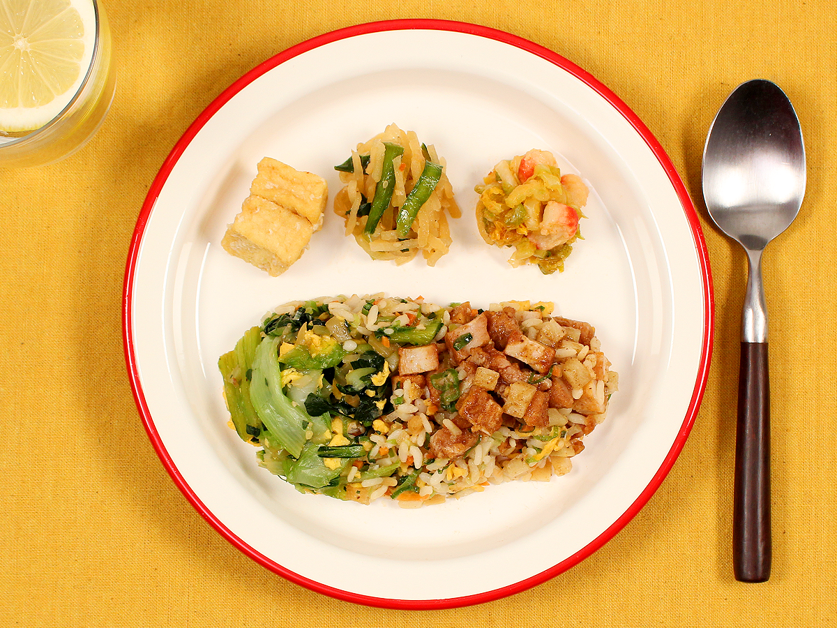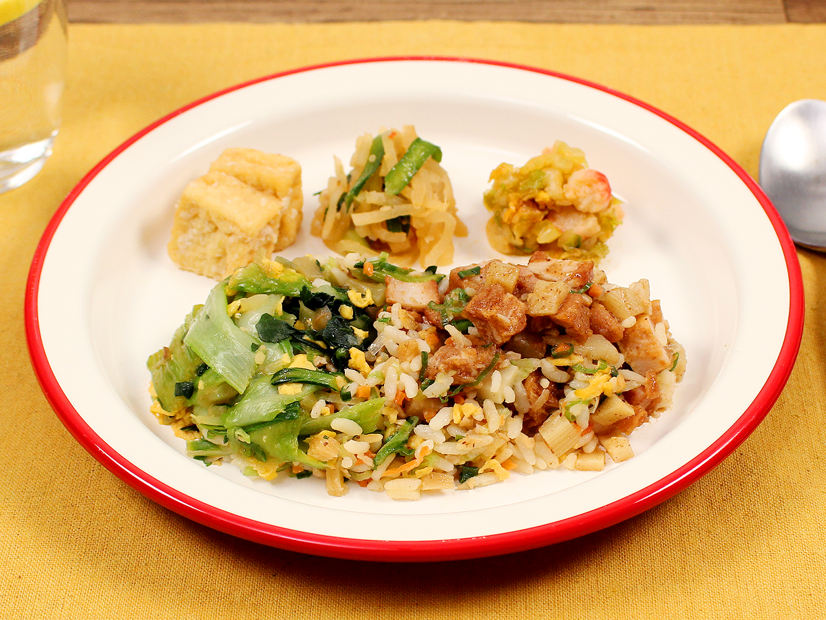 副菜は、絹揚げ塩麹、大根とニラのあえ物、白菜辛味あえです。