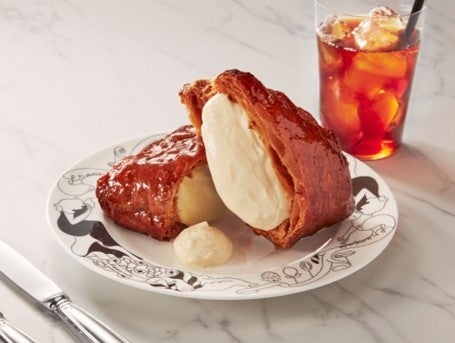 幾重にも重なった薄い生地が、柔らかい空気の層をつくりクリームをやさしく包み込みます。