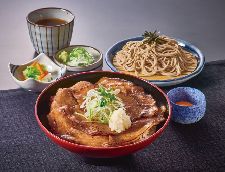 北海道産の「いくら」「ホタテ」を使用した「北海道と北のめぐみ丼」や「花咲ガニ」の旨みと風味を存分に引き出した根室の郷土料理「鉄砲汁(かに汁)」、「炙り豚丼」に使用する、北海道産ブランド豚「ゆめの大地」は赤肉に入った脂のサシが、柔らかい肉質で甘みと旨みが楽しめます。