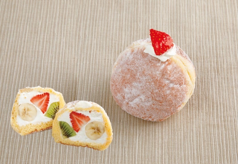 ふわふわのブリオッシュ生地の中には、なめらかな自家製生クリームといちご・バナナ・キウイ入り。