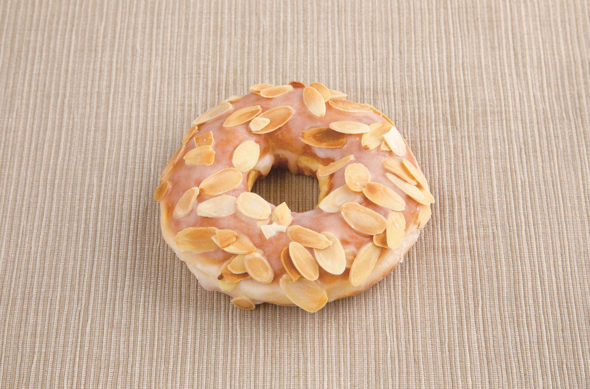 シュガーグレーズをコーティングしたふわふわのドーナツにアーモンドスライスをたっぷりトッピング。