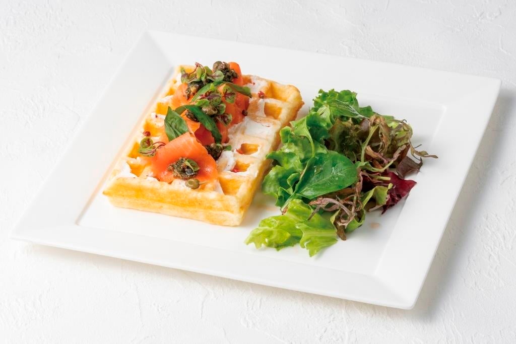 「スモークサーモンとアボカドの大葉ジェノベーゼワッフル」 1,320円