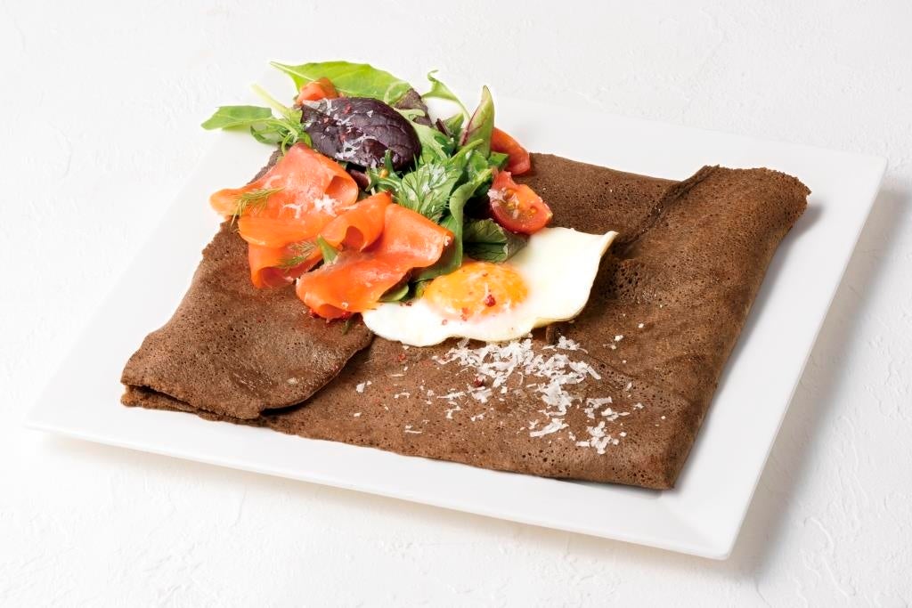 「スモークサーモンと半熟卵のカカオガレット」 1,420円