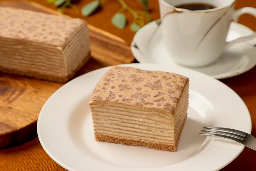 パティシエが研究を重ねたこだわりのもちもち食感のクレープ生地と北海道産牛乳を使用したなめらかな濃厚クリームを、1層1層丁寧に重ねた10層のこだわり生地の食感と濃厚な味わいのもちもちミルクレープ。口の中でほどけていく最高の食感を心ゆくまでお楽しみいただけます。