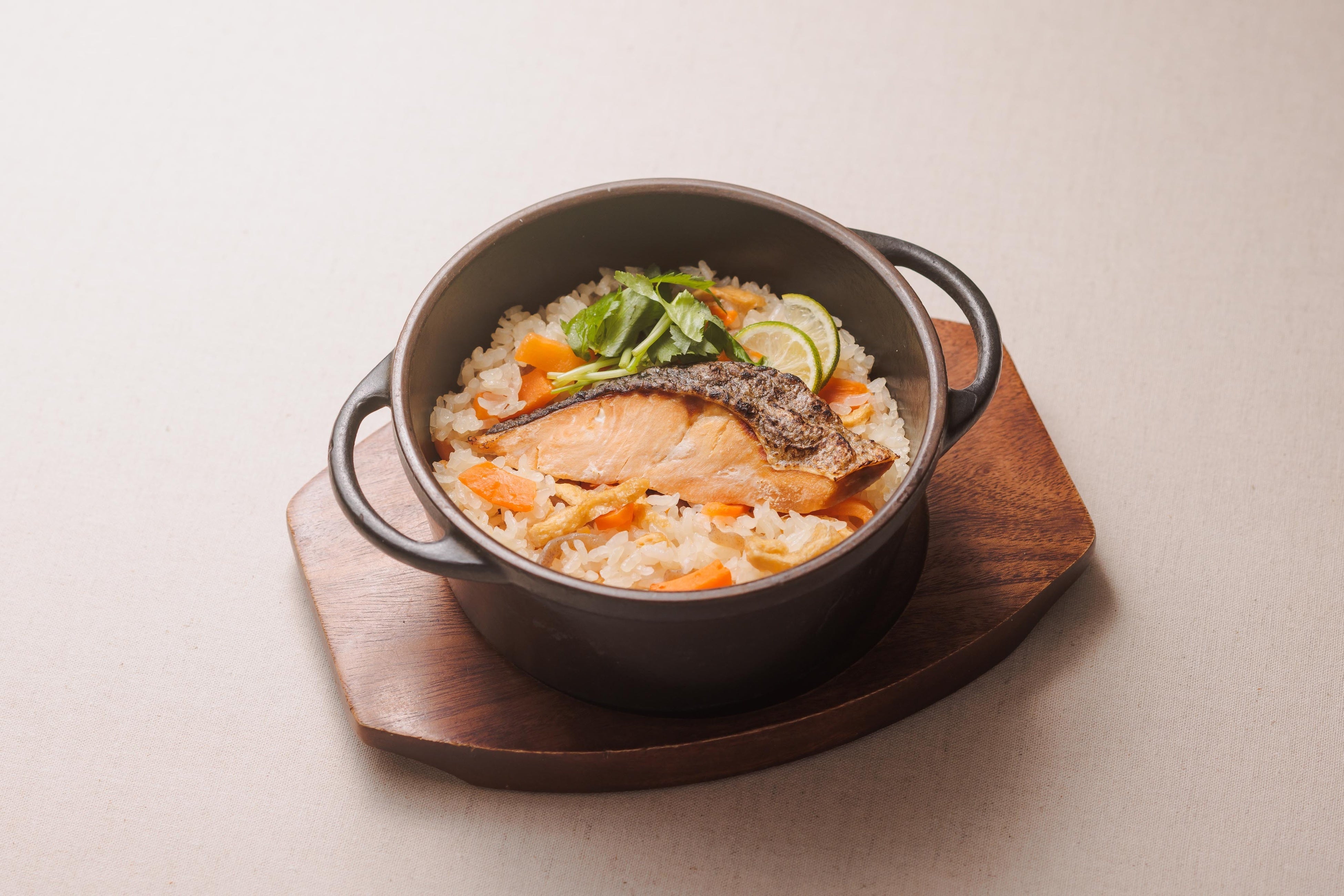 焼き鮭の香ばしさとかつお節だしのうま味が味わえる炊き込みご飯です。