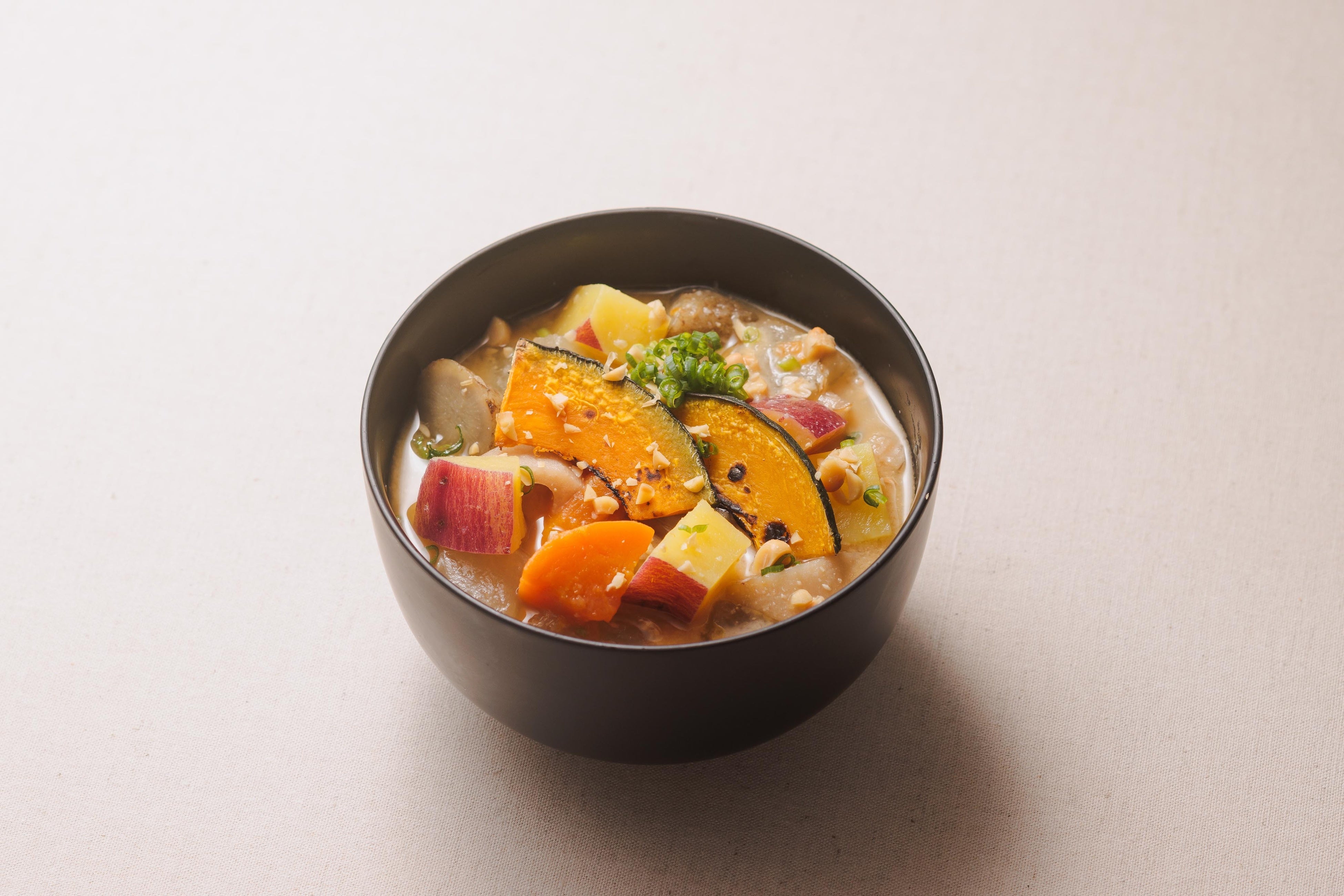 かぼちゃを香ばしく焼き、ほかの具材とは一味違う美味しさを楽しめるよう工夫いたしました。ごろっとした秋野菜を贅沢に味わっていただきたいです。