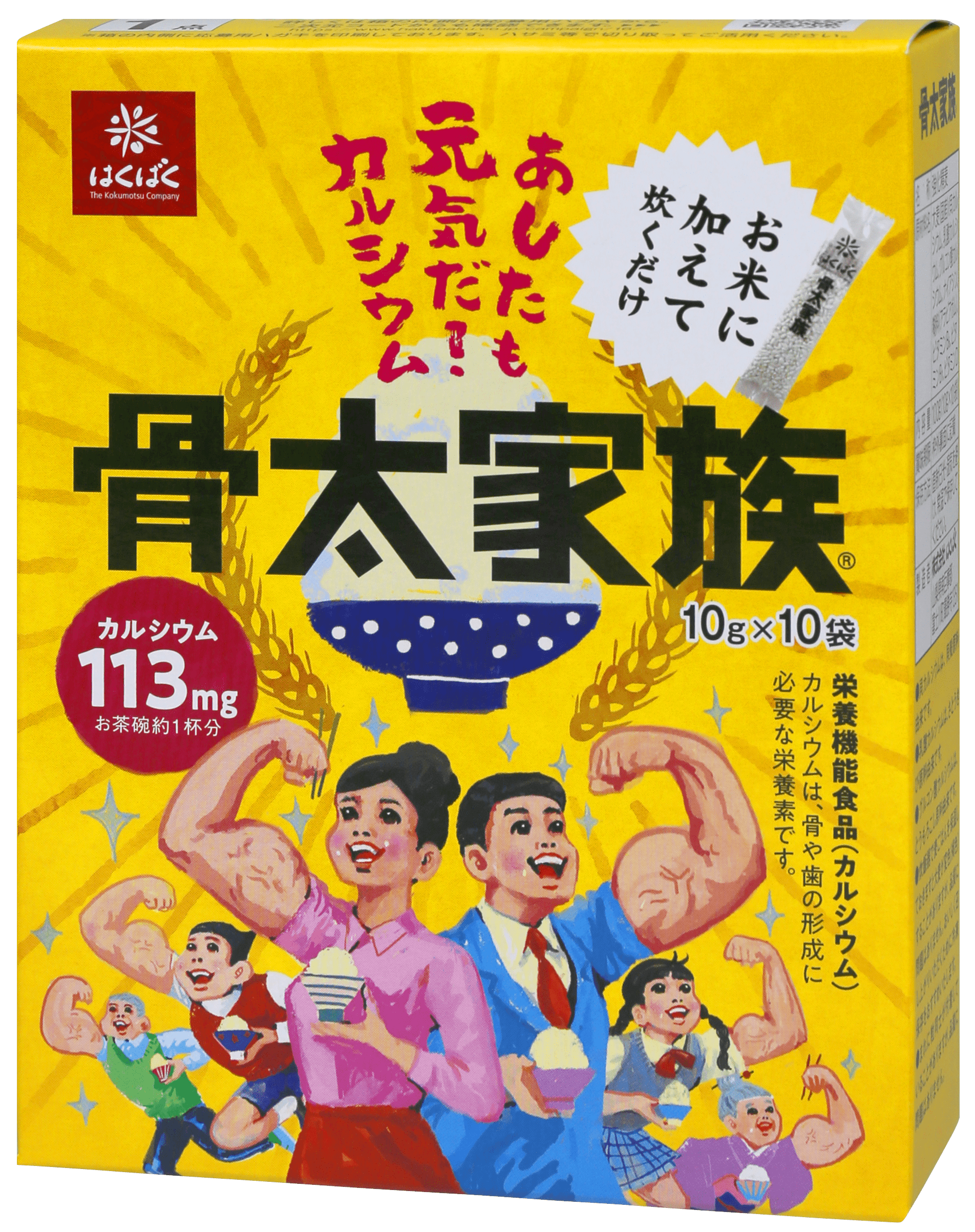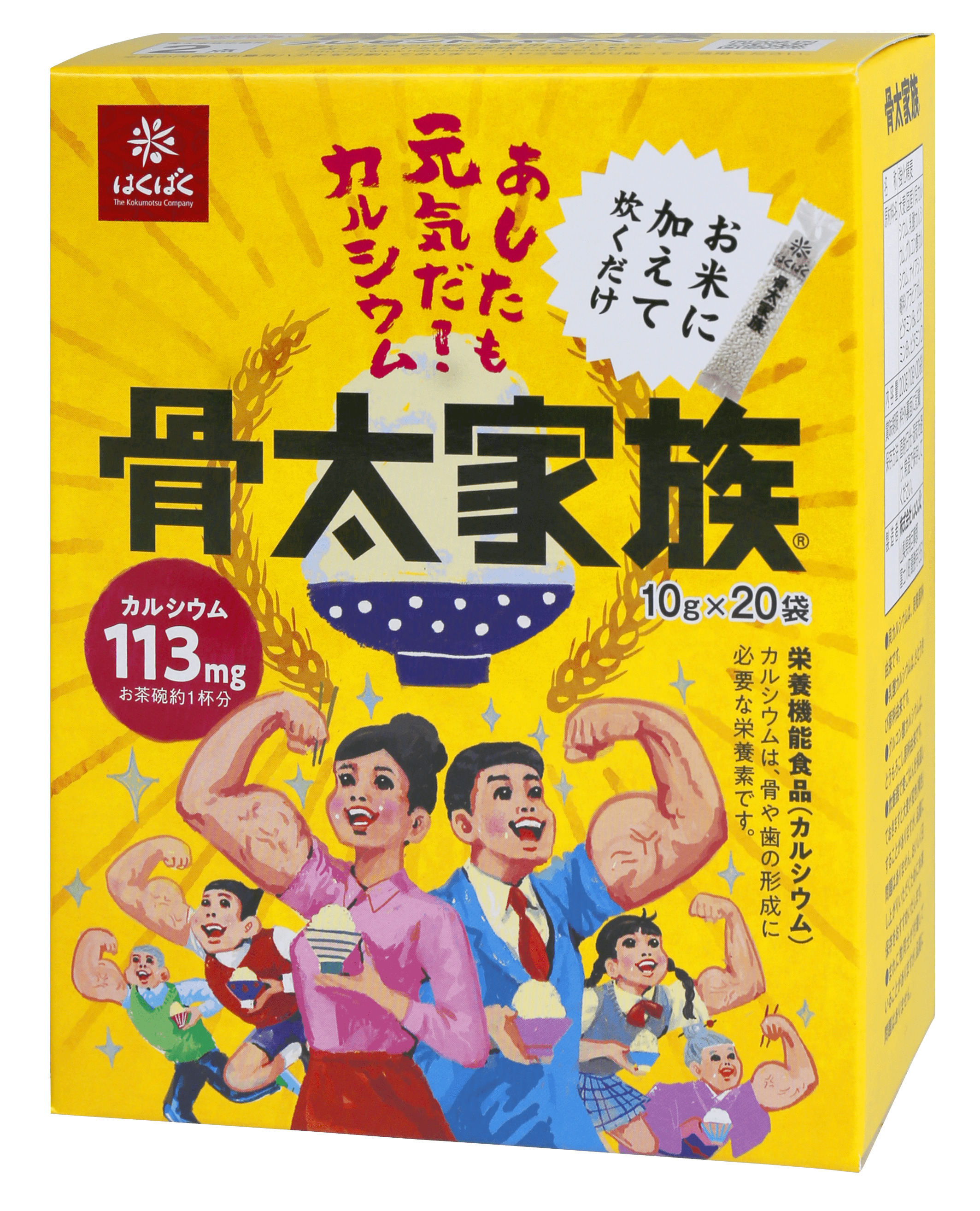 当社は1990年に、日本人に不足しているカルシウムを毎日のごはんで簡単に摂取できるようにと、お米のように加工した大麦にカルシウムをコーティングした「骨太家族」を発売しました。