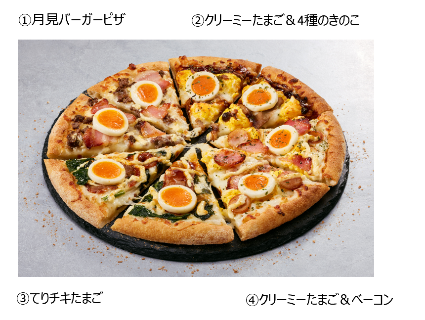 内容:①月見バーガーピザ ②クリーミーたまご&4種のきのこ