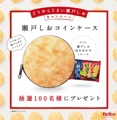 新CM公開日の9月2日より、X(旧:Twitter)内で、「#どうやらうまい瀬戸しお キャンペーン」を実施いたします。栗山米菓公式アカウント「ばかうけ&星たべよ&瀬戸しお【公式】(@bakauke_hoshi)」をフォロー、そして公式アカウントで投稿される「#どうやらうまい瀬戸しお」のハッシュタグがついたポストを引用リポストすることでご応募いただけます。見事、抽選の中から当選された方100名へ、「瀬戸しおコインケース」と「瀬戸しお詰め合わせ1ケース」をプレゼントいたします。