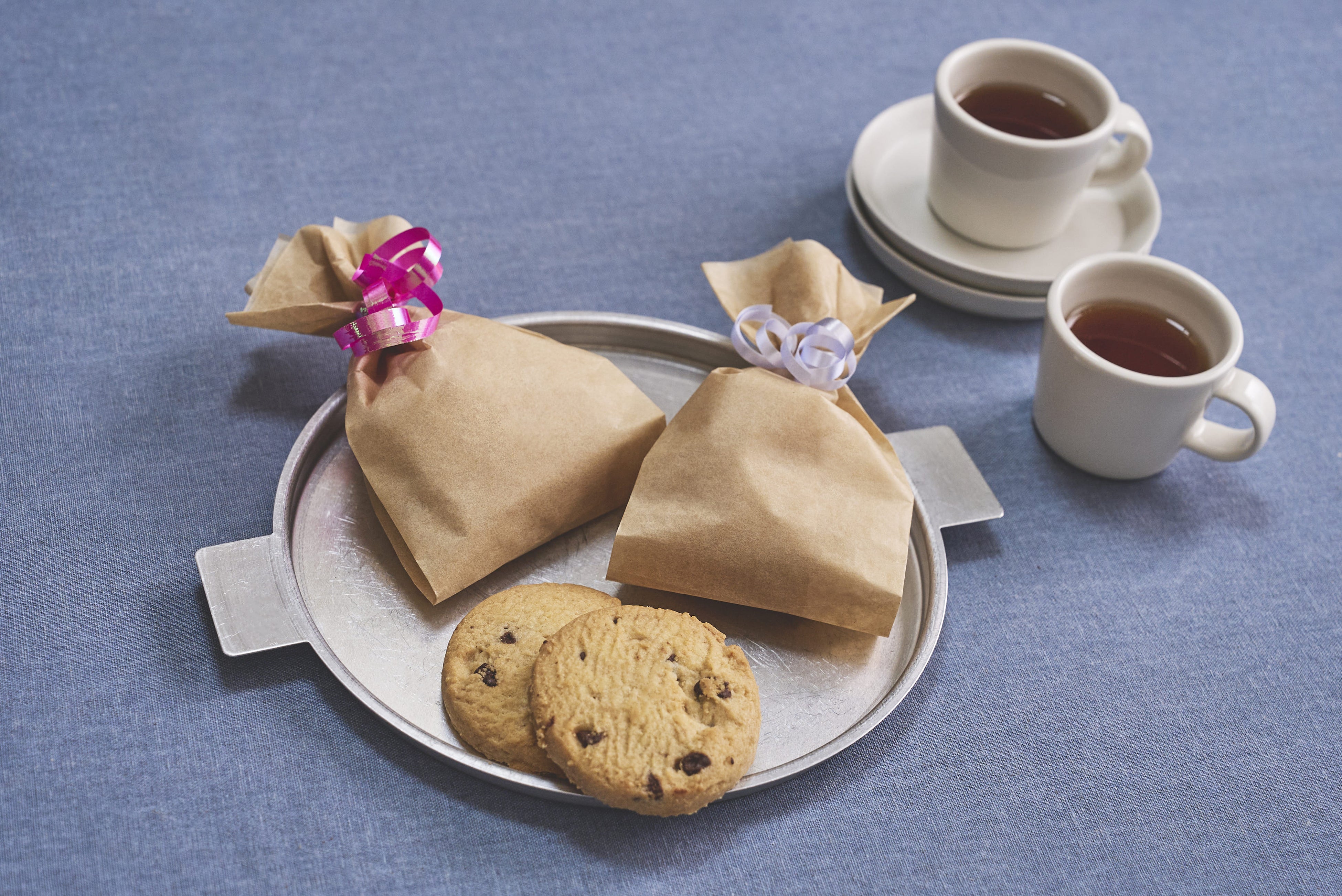 ティーバッグやお菓子などプチギフトの包装に。「クックパーⓇ ブラウンクッキングシート」から中身の色がほんのり透けて見えるのがポイントです。