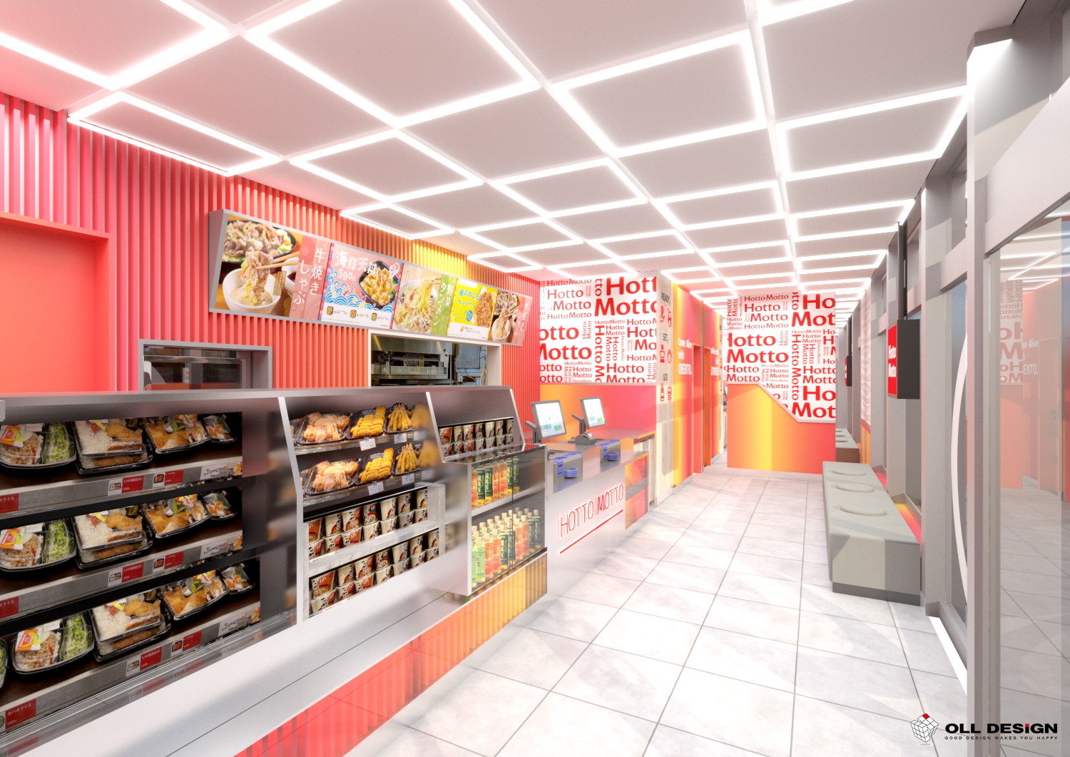 新デザイン店舗は、外観にも想いやこだわりを表現しました。街中で“赤色”を見かけた際に「ほっともっと」をイメージしていただきたいという想いから、従来の「ほっともっと」に比べ、キーカラーである“赤色”を強調させた外観となっております。さらに、キューブ型のデジタルサイネージを導入することで、街中での存在感を高めました。また、看板やガラス面に“お米”のマークを入れることで「ほっともっと」が“お米”にこだわりを持ったブランドであることを力強く表現しました。