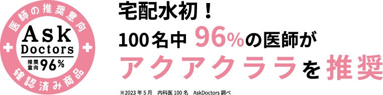 宅配水業界初認証!「100名中96%の医師がアクアクララを推奨」