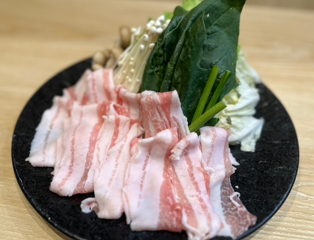 三田ポークのしゃぶしゃぶはもっちりとした赤身の旨味と豊富な甘い脂身のバランスが絶妙で、野菜との相性は抜群です。食べれば食べるほど食欲が増す、止まらない味わいが特徴です。