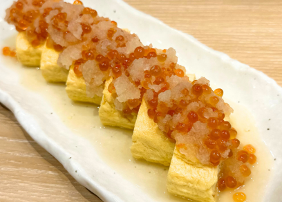 出汁にこだわった風味豊かな味と、何層にも重なった層からじゅわっと染み出る素材の味が織りなす味わい深いだし巻きたまごです。