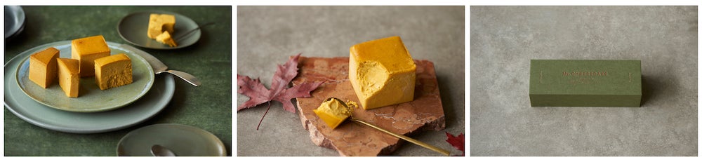 さらに、秋の味覚カボチャを使用したキューブ型ケーキ3種の食べ比べを楽しめるアソートセット「Mr. CHEESECAKE assorted 3-Cube Pumpkin」も登場。カボチャにメープルシロップとフェネグリークを合わせたシンプルで濃厚なフレーバー「Maple Pumpkin」に、カボチャにシナモンやカルダモン、クローブを合わせたスパイシーなフレーバー「Chai Tea Pumpkin」、カボチャにヘーゼルナッツの旨味を合わせたこっくりとしたフレーバー「Pumpkin Hazelnut」をオリジナルのBoxに詰めてお渡しします。