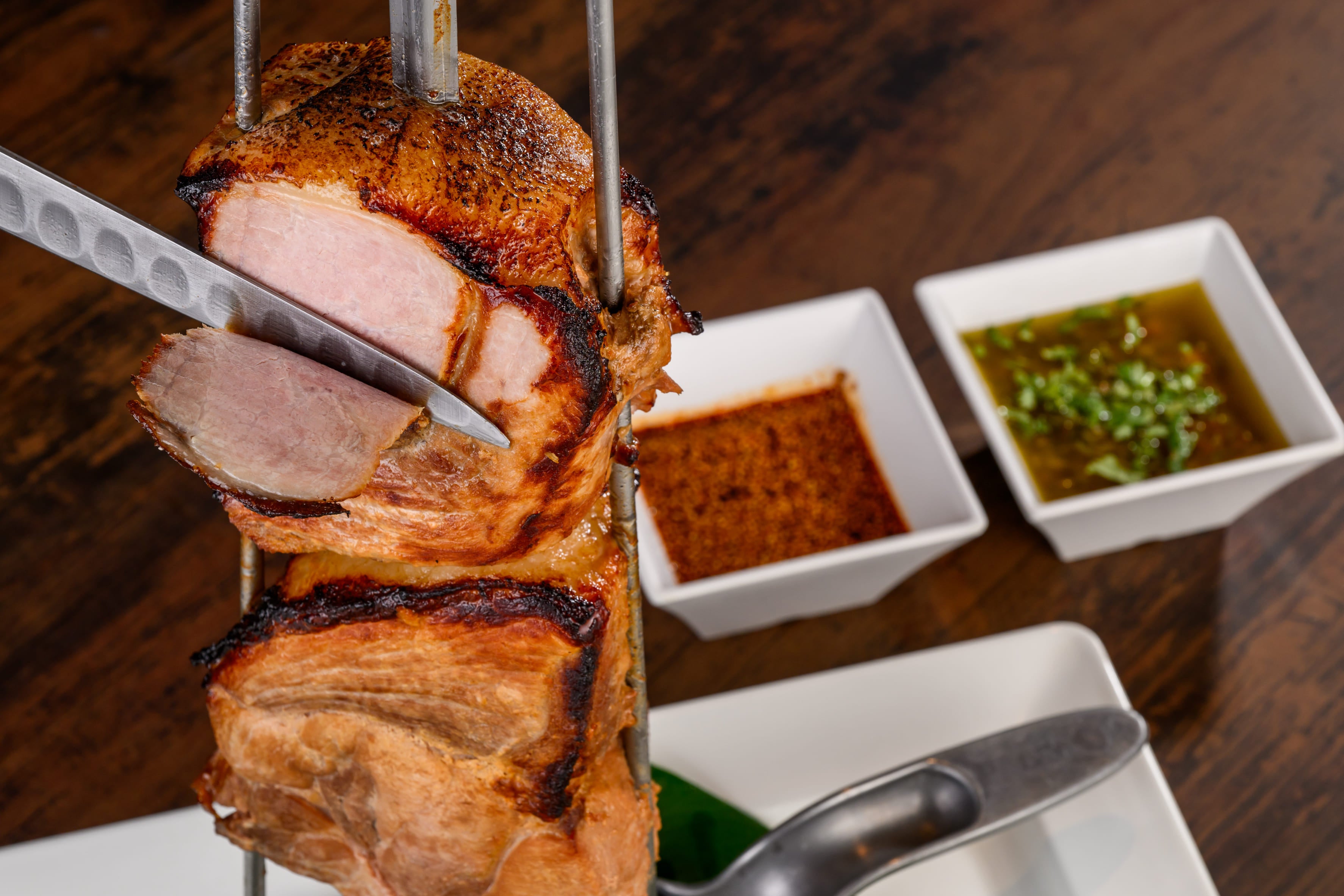 当レストランの定番「シュラスコロースト」ではフェア限定「沖縄県産アグー豚(金アグー)」が登場。じっくりと焼き上げるシュラスコローストで沖縄県産アグー豚のお肉の旨みと甘みをとじ込めました。シュラスコローストならではのやわらかなお肉の食感をお好きなアジアンソースとご一緒にお愉しみください。お席でお好きなだけ切り分けるテーブルサーブでご用意いたします。ソースは「エスニックソース(パクチーソース)」「インドソース(スパイスソース)」の2種をご用意。