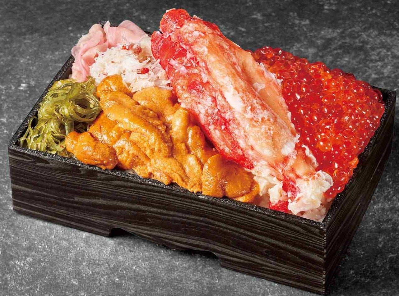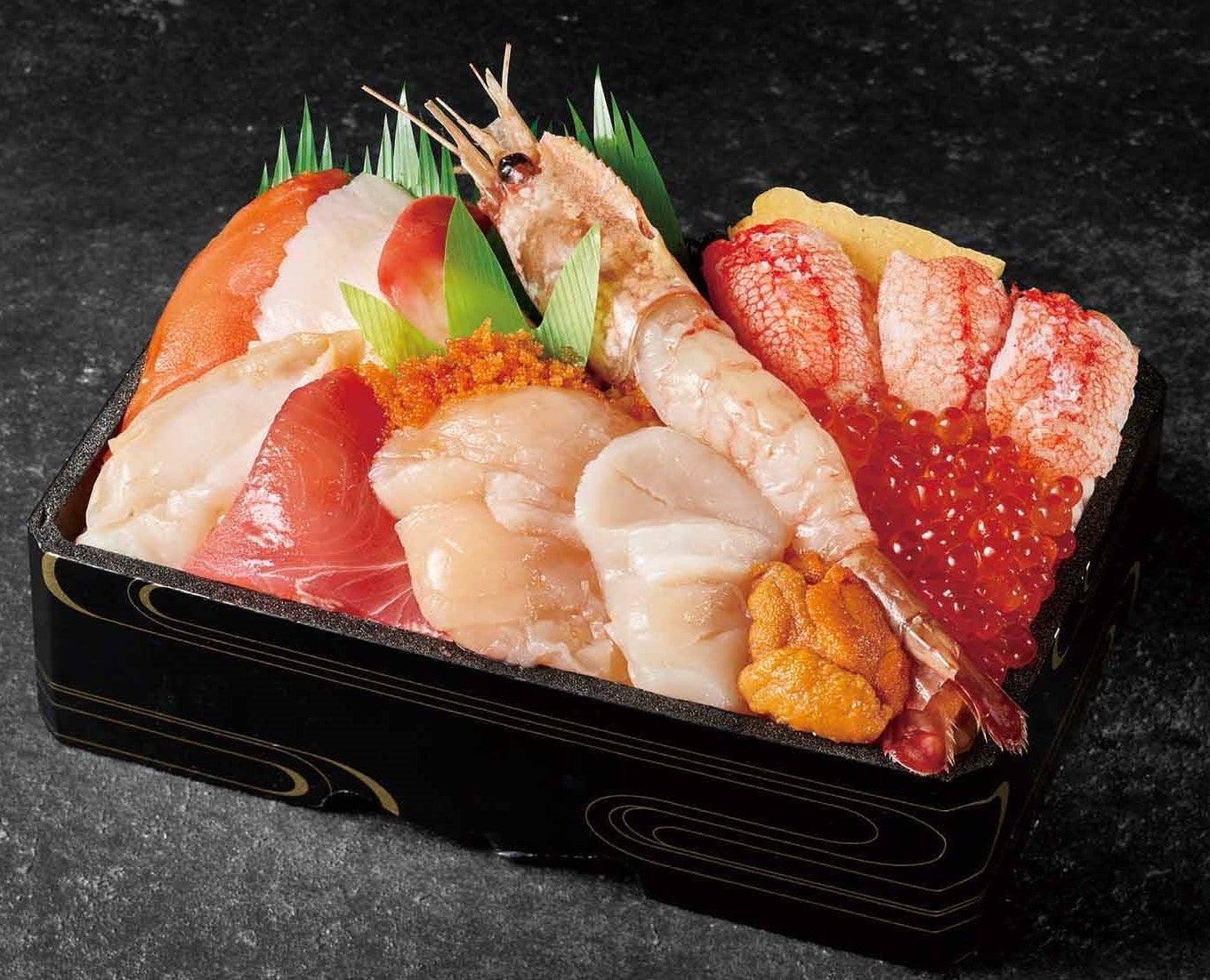 ぼたん海老・ずわい爪肉・いくら・帆立など11種類の海の幸を盛り合わせたお弁当。