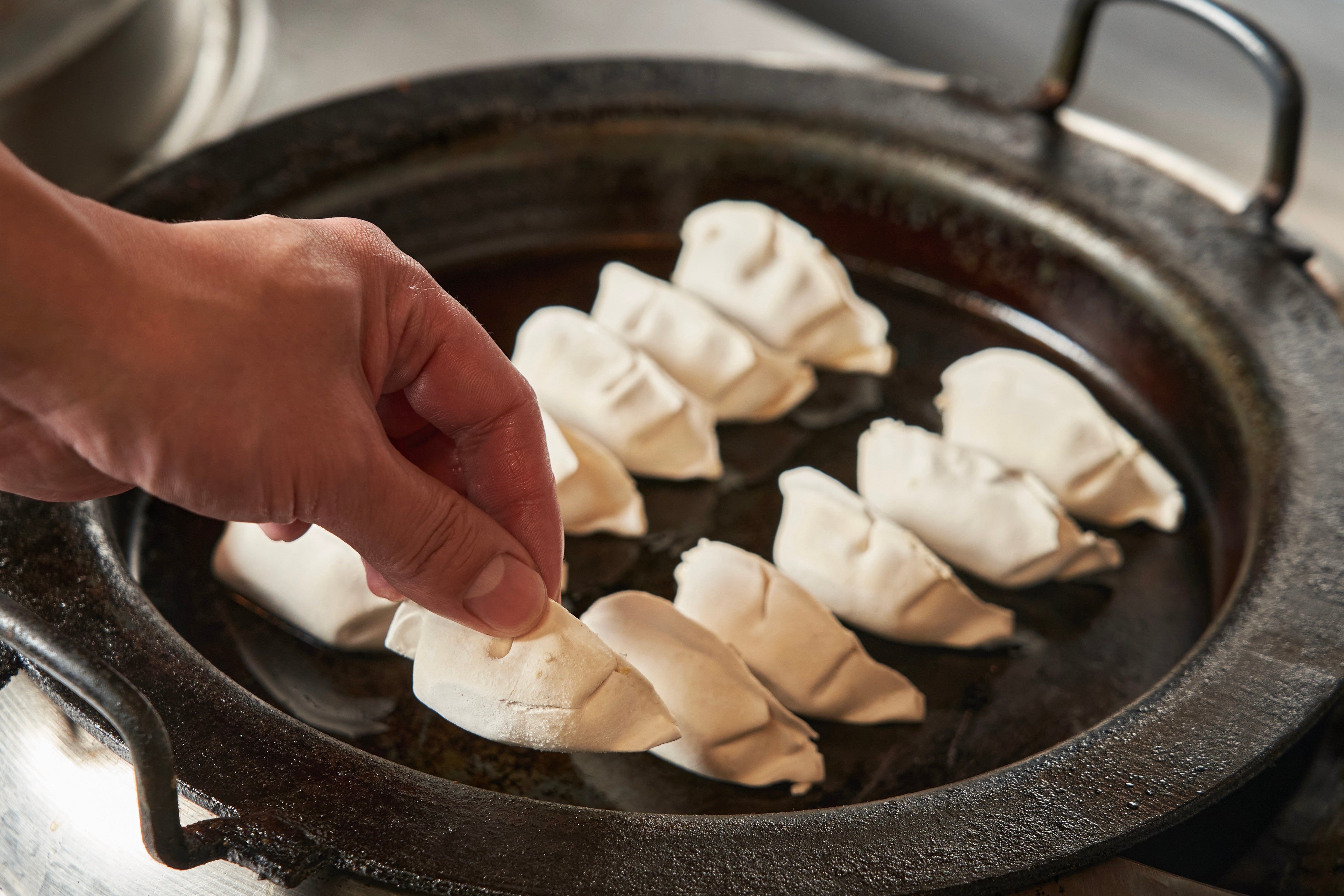 調理方法:フライパンに油をひき、120㏄の水とともに製品をフライパンに並べ、蓋をして強中火で約4分蒸し焼きにする。蓋をとり、油を少々回し入れ水分を飛ばしながら焼き上げる。