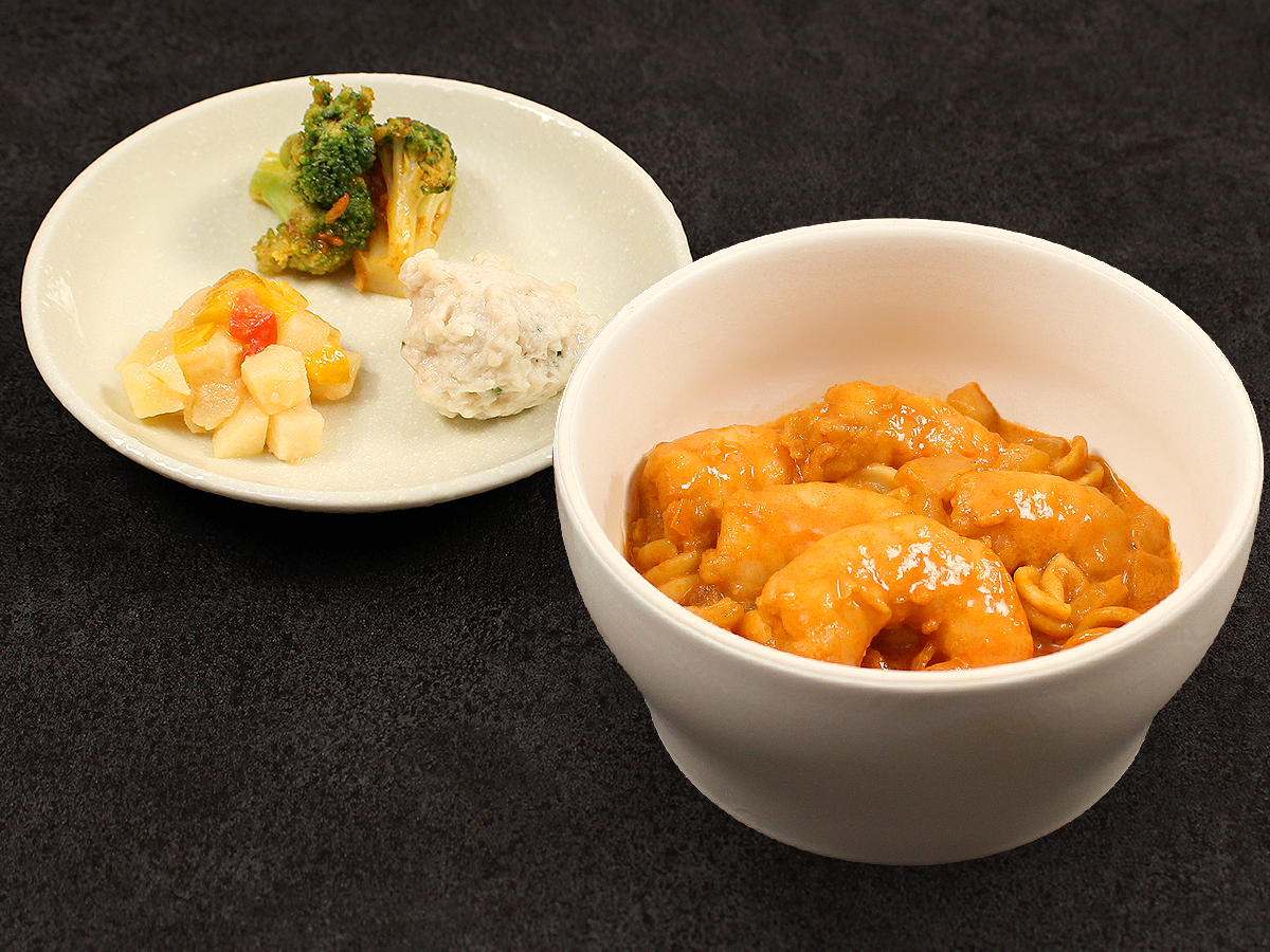 副菜は、マヨネーズで和えたトリュフ風味のポテト、カレーブロッコリー、真鯛入りのフィッシュボールです。