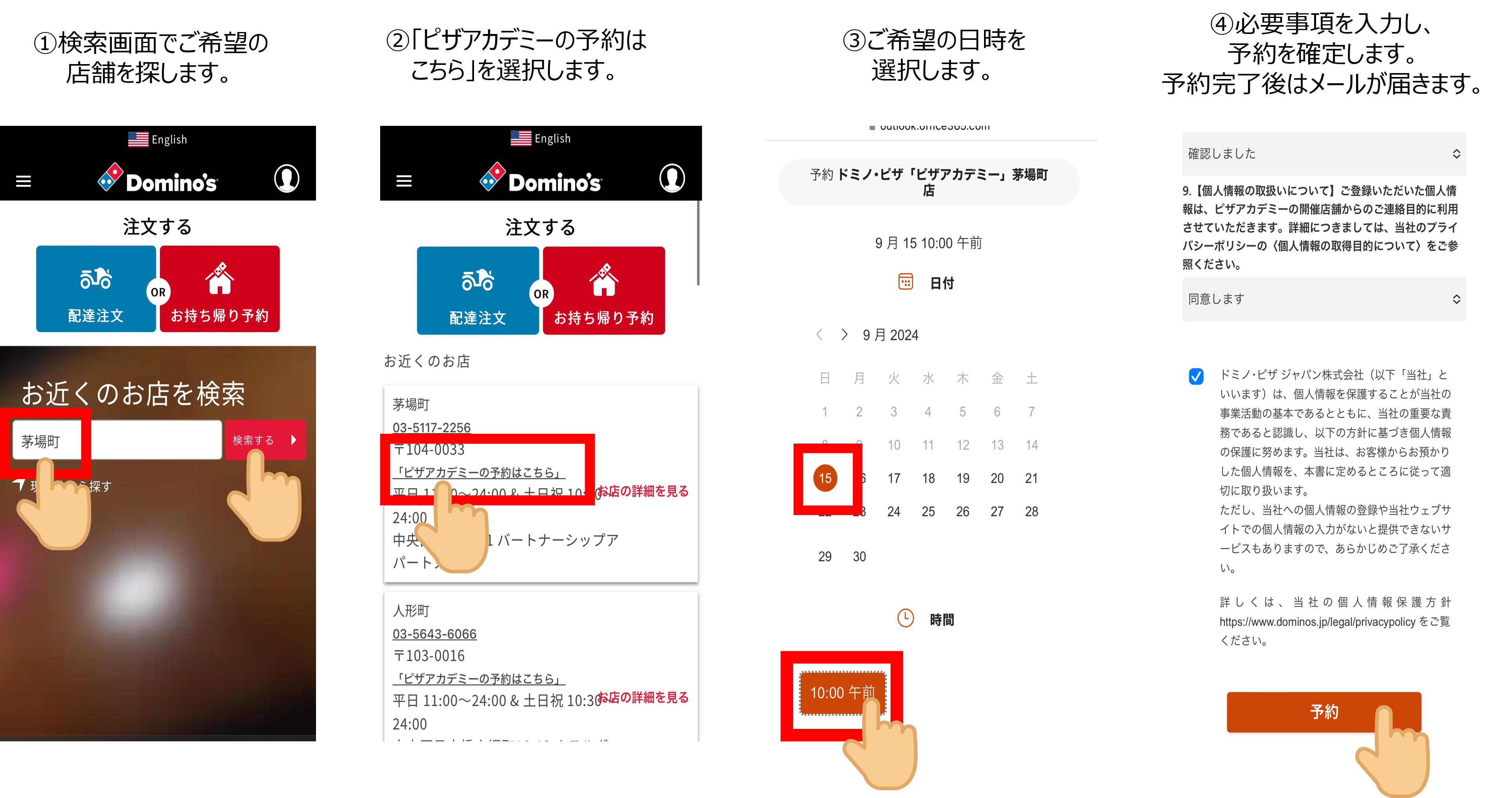 申込方法:参加希望店舗を選択し、Webにてご予約ください。※5名様以上の場合はお電話にてご予約ください。