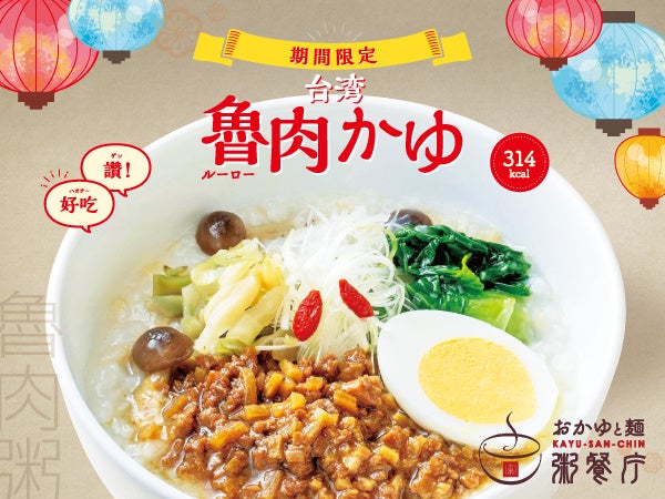 日本でも大人気の「魯肉飯(ルーローハン)」は、豚肉をさまざまなスパイスとともに甘辛く煮込んだ、思わずごはんが進んでしまう台湾の“定番屋台めし”です。この秋新たに発売する「台湾魯肉かゆ」は、本格中華粥専門店「粥餐庁」オリジナルの新メニュー。豚ひき肉を生姜・にんにくで炒め、甜麺醤と中国醤油、五香粉(ウーシャンフェン)で味付けした旨みたっぷりの具材と、2001年の創業以来受け継がれてきた自家製スープで生米からじっくり炊き上げた自慢のおかゆが絶妙に絡み合います。旨みが詰まった肉みそと一緒に煮込んだ竹の子、添えられた青ザーサイの食感も併せてお楽しみください。