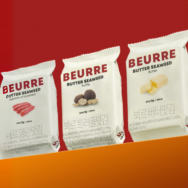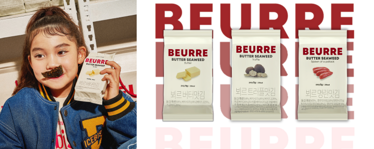 今回、焼肉KINTANで限定販売を行うBEURRE海苔は、香り豊かなバター風味のビールが人気の韓国発ブランド〈ブーランジュリ―ブール〉の新商品、プレミアムスナック海苔シリーズ全3種です。BEURRE海苔は濃厚なバターの風味が特徴です。焼肉のコクや旨味、フルーティーなタレの味わいが最高にマッチし、新たな焼肉を体験いただけます。