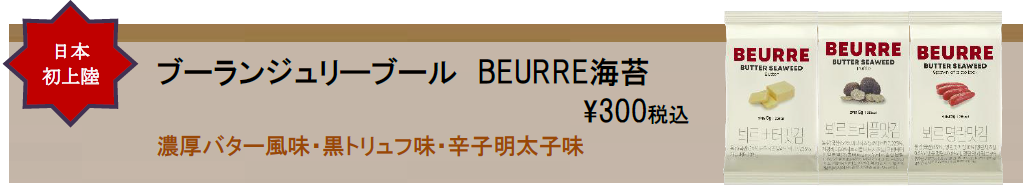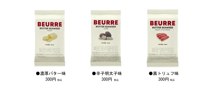 日本初上陸!バターの風味を生かした韓国海苔『BEURRE』の3種類を、焼肉KINTANが日本国内で初めて販売をいたします。販売は伊勢丹新宿店POP UPストア、焼肉KINTAN12店舗、公式オンラインストアにて行います。