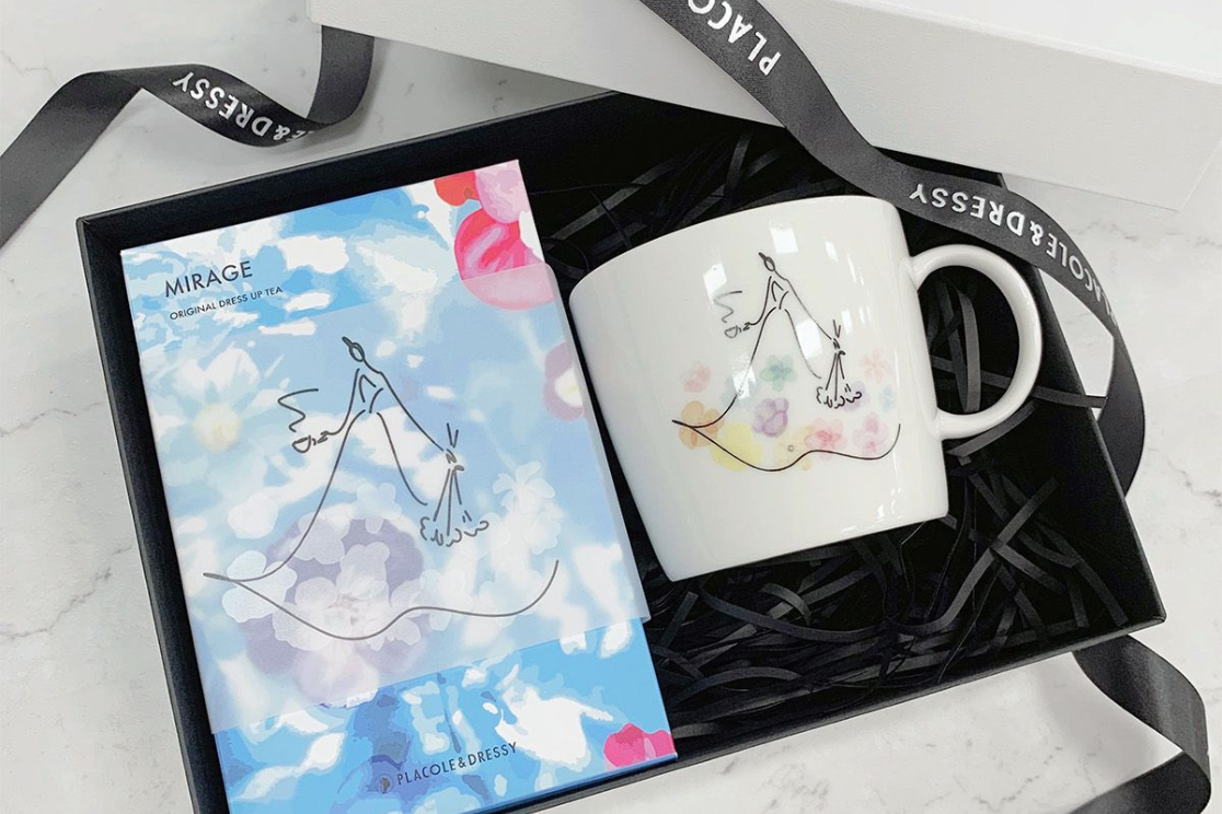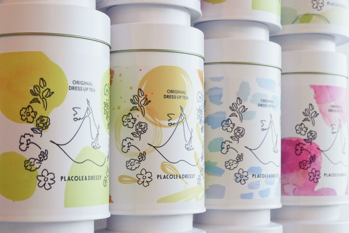 PLACOLE&DRESSYが提供する、人生に魔法をかけるオリジナルブレンドティー。紅茶全種類からお好みの3種を組み合わせてカスタマイズできる 限定オリジナル缶です。華やかなフラワーイラストのパッケージも7種類からお選びいただけます。