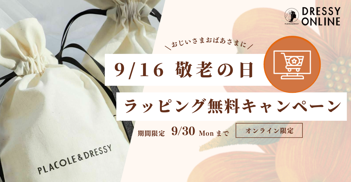 2024年9月16日(月)は「敬老の日」です。いつも支えてくれるおじいさまやおばあさまに、感謝の気持ちを込めたギフトを贈ってみませんか?DRESSY ONLINEでは、敬老の日にぴったりな無料ラッピングキャンペーンを開始致します。普段なかなか伝えられない「ありがとう」を、特別なラッピングとメッセージカードで気持ちを込めてお届けします。ちょっとした工夫で、贈り物がさらに特別なものに。忙しくて会えない日が続いていても、心のこもったギフトで気持ちがきっと伝わるはず。このチャンスに、DRESSY ONLINEの無料ラッピングサービスを使って、敬老の日をあたたかくて素敵なひとときにしてくださいね。