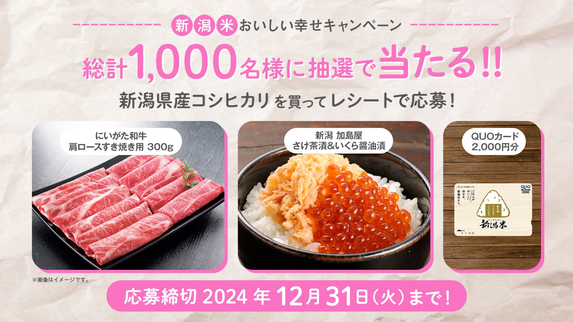 新潟県産コシヒカリを購入したレシートを、キャンペーンサイトからアップロードすることで簡単に応募が可能。キャンペーンに参加していただいた方の中から、抽選で合計1,000名様に素敵な賞品をプレゼントいたします。美味しい新潟県産コシヒカリを楽しみながら、うれしい賞品を手に入れるチャンスをぜひお見逃しなく。
