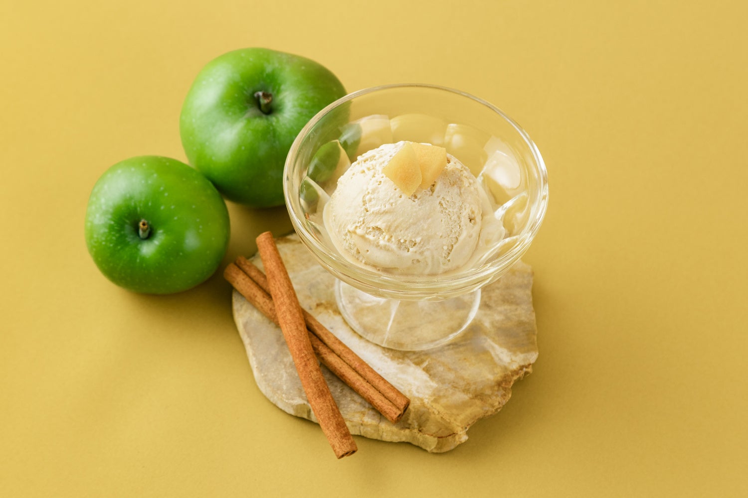 今回、そんな貴重な国産のブラムリーを扱っている長野県の小布施屋さんより、特別に果実と無添加のピューレを分けて頂き、それを使ってシナモン香るアップルアイスをつくりました。