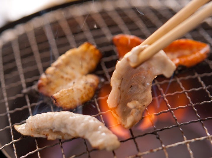 塩やタレで味付けされたふぐを、網の上でじゅうじゅうと焼く。焼くと程よく身が締まり、ぷりぷりの食感と滴る旨味があふれ出します。