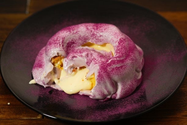 紫芋クリーム&とろけるマスカルポーネの2種のソースでお召し上がり下さい。