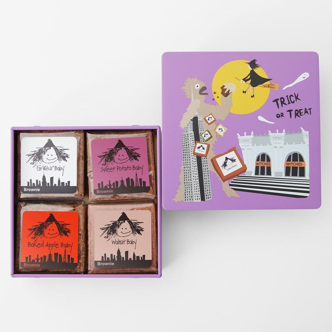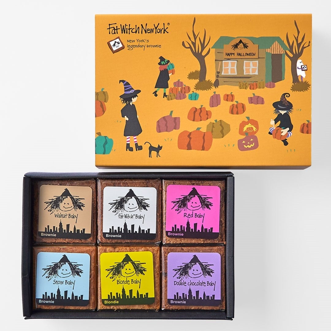 通常販売されているBASICSのパッケージがハロウィン限定デザインになりました。初めてファットウィッチのブラウニーを手にする方へおすすめしたい、NY本店の中でも特に人気のフレーバーを厳選した詰め合わせセット。