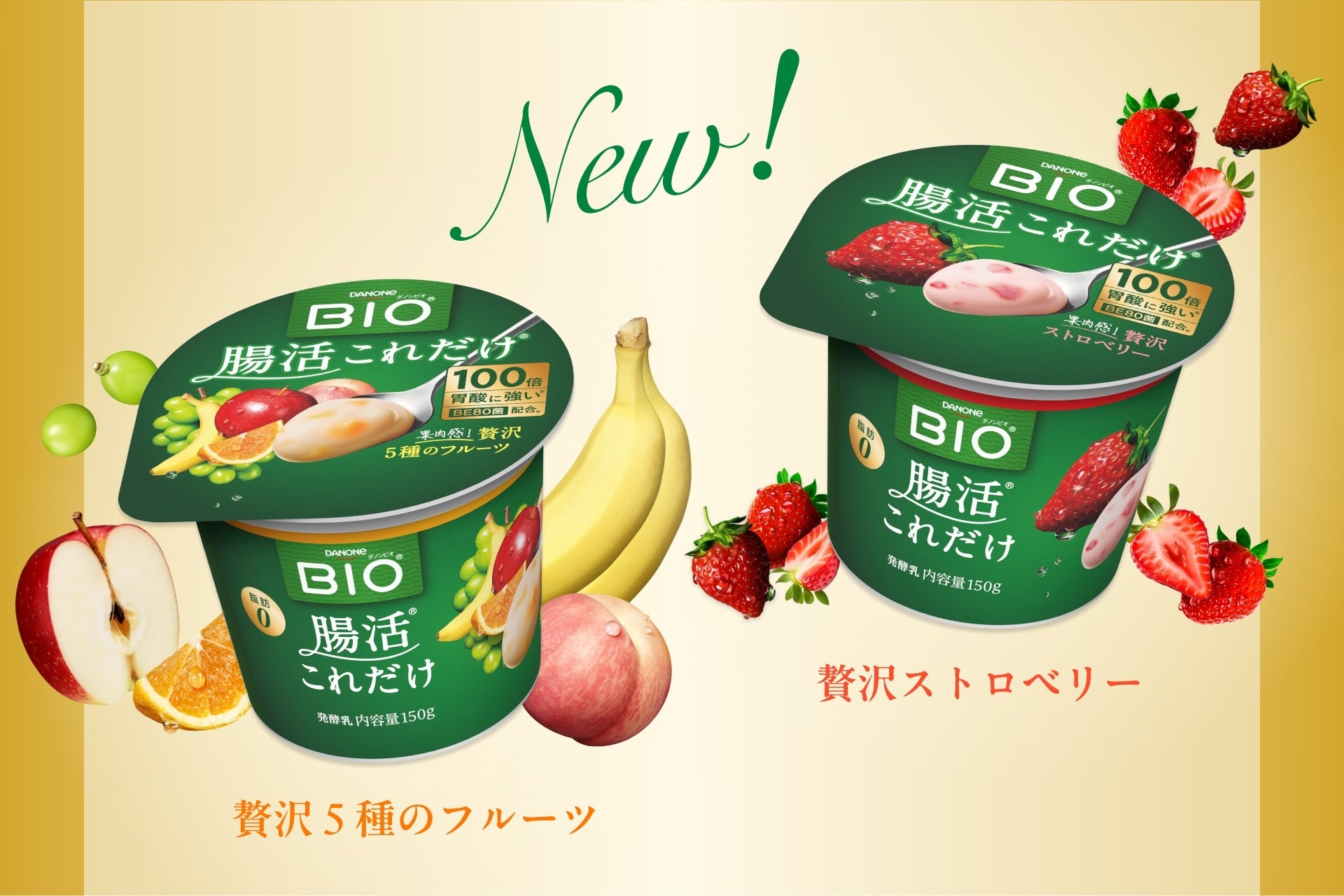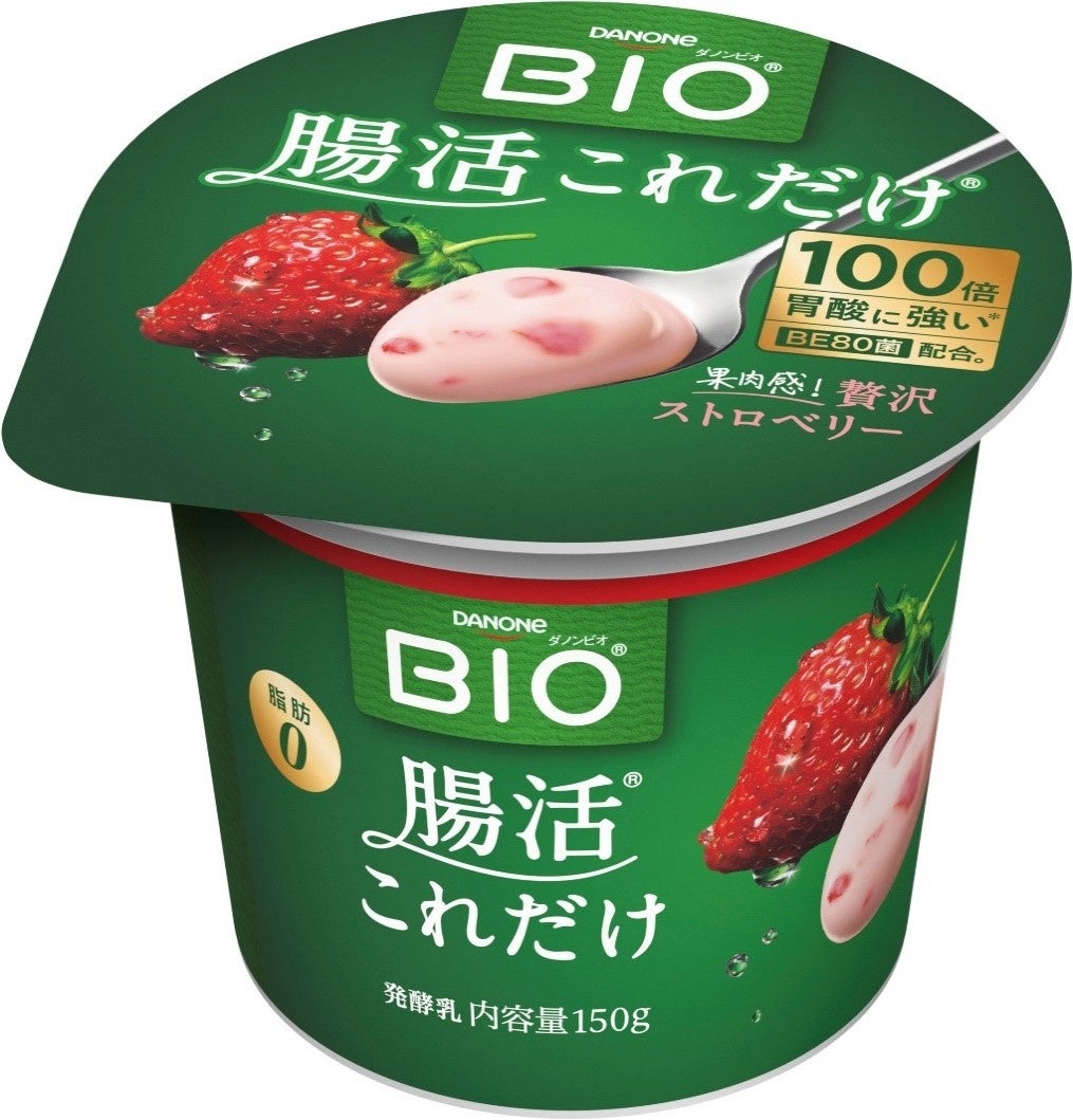 「腸活これだけ 贅沢ストロベリー」と「腸活これだけ 贅沢5種のフルーツ」には、ダノン ビオの特徴である、100倍胃酸に強く※1、生きて腸まで届くBE80菌、そしてオリゴ糖と食物繊維を配合しています。BE80菌は生きて腸まで届いて善玉菌を増やし、オリゴ糖は善玉菌のエサとなり善玉菌を増やし、食物繊維は便のカサを増すなど便の状態を良くします。また、食事やデザート代わりとして気軽に取り入れていただけるよう、おいしさや満足感も重視する消費者の方々のニーズを考慮し、果肉感をしっかり感じられるヨーグルトに仕上げるとともに、1カップ150gで満足できる容量でありながら、脂肪0というヘルシーさにもこだわりました。