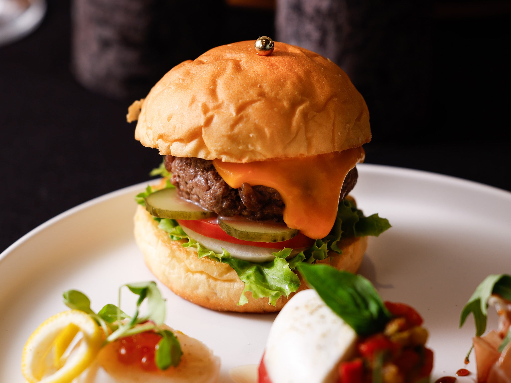 ランチメニューで人気のチーズバーガーがミニサイズで登場。当店自慢のUSDAプライムビーフを使用したジューシーなパテが絶品です。